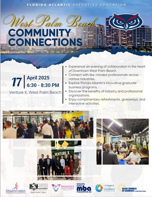 Hosted by Florida Atlantic University Executive Education in partnership with leading professional and business organizations, this event brings together professionals, entrepreneurs, and community leaders from across Palm Beach County for an evening of purposeful networking and discovery.